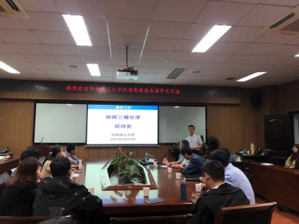 邵黎雄老师对祝诗发教授的到来表示热烈欢迎,并向师生介绍了祝诗发教授的基本情况。
