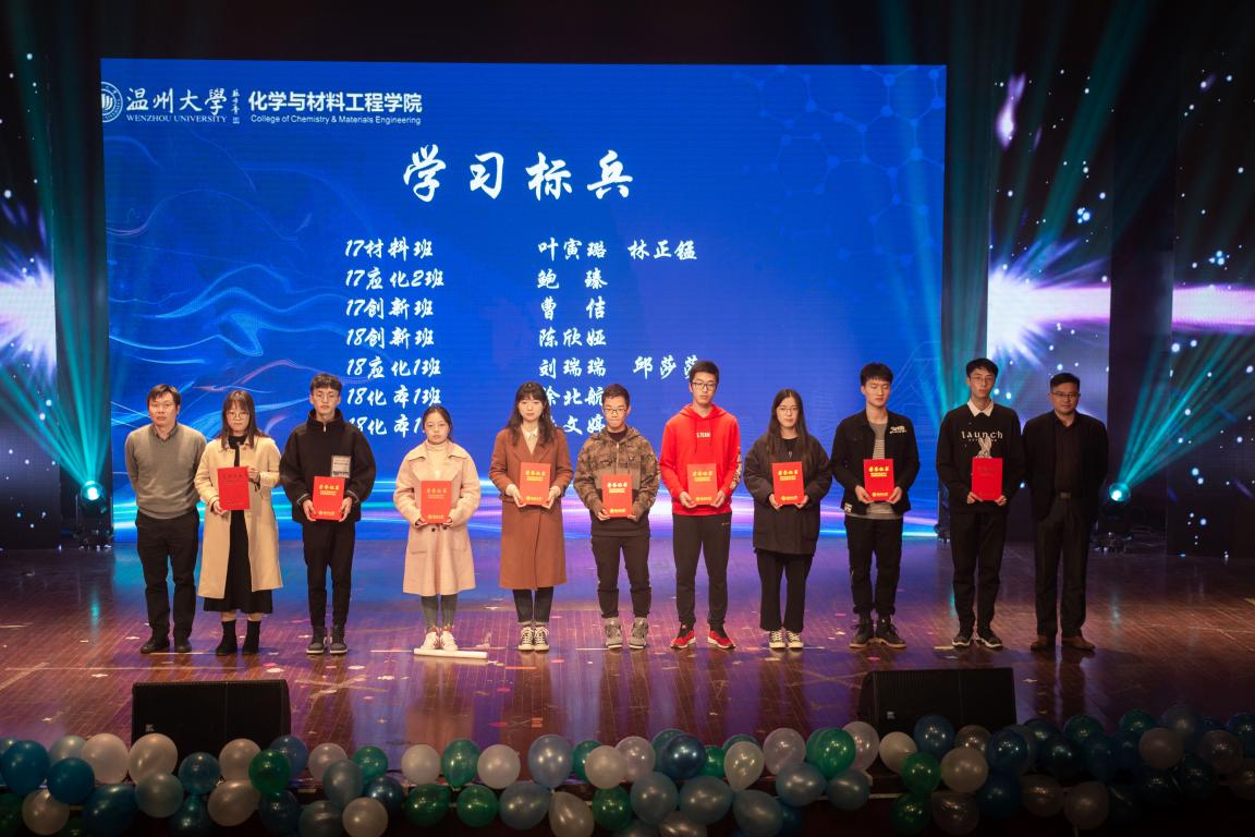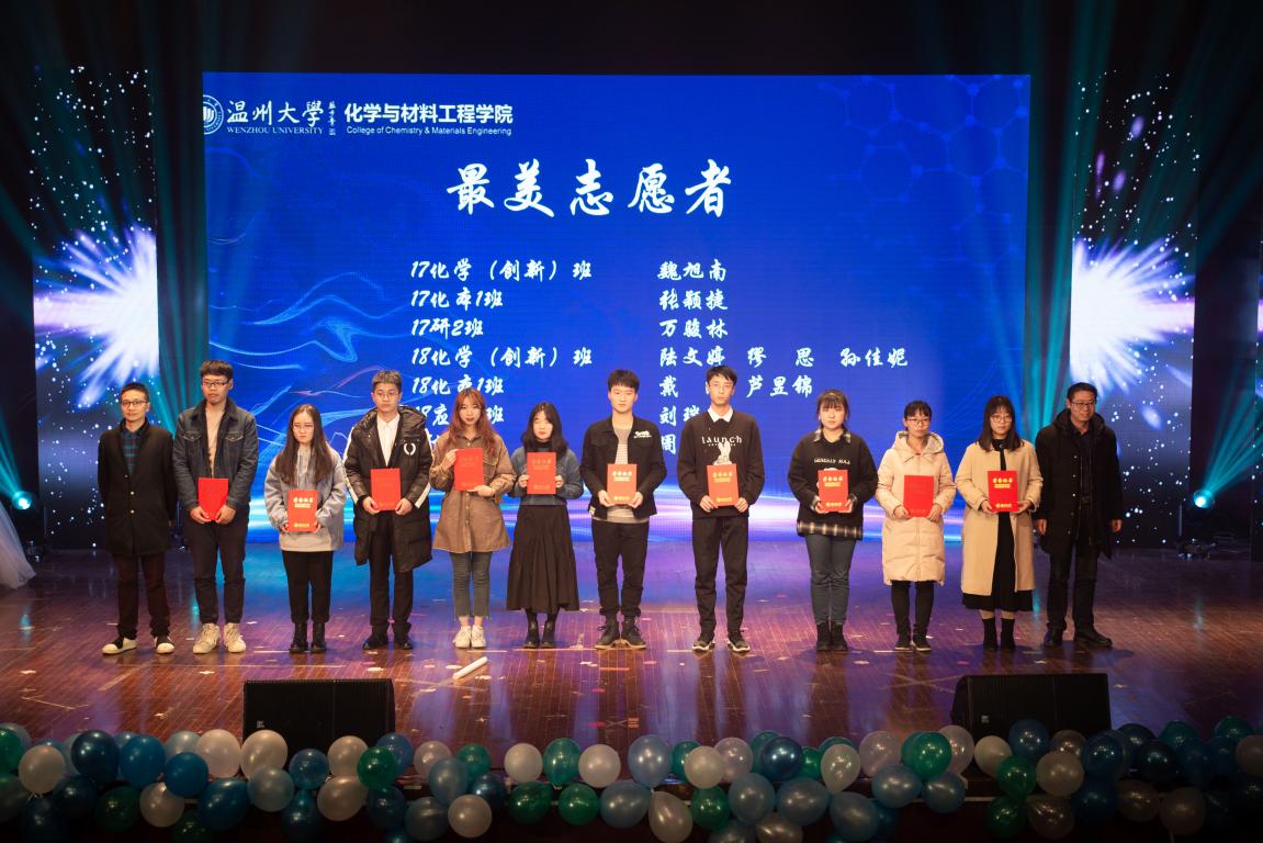 其中,最令人感动的是“温馨环节”。每个班级在视频里展示着各自的特色。随后是班主任、辅导员老师们精心准备的化学版《青花瓷》的合唱节目。每一位学子的成长都离不开班主任、辅导员老师们的的悉心教导,为了感谢他们的付出,各班代表为老师们献上了自己精心准备的礼物与祝福。