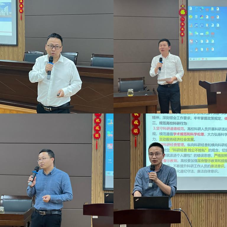 首先,面向全体教工开展师德师风专题教育,由党委书记刘吟领学关于新时代高校教师职业行为十项准则、习近平总书记关于师德师风的重要论述、《温州大学教师职业行为规范及师德失范行为处理办法(试行)》的文件精神,刘吟书记指出作为高校教师,必须警钟常鸣,坚守教育人的初心,不断提升教书育人能力,争做新时代的“四有”好教师。