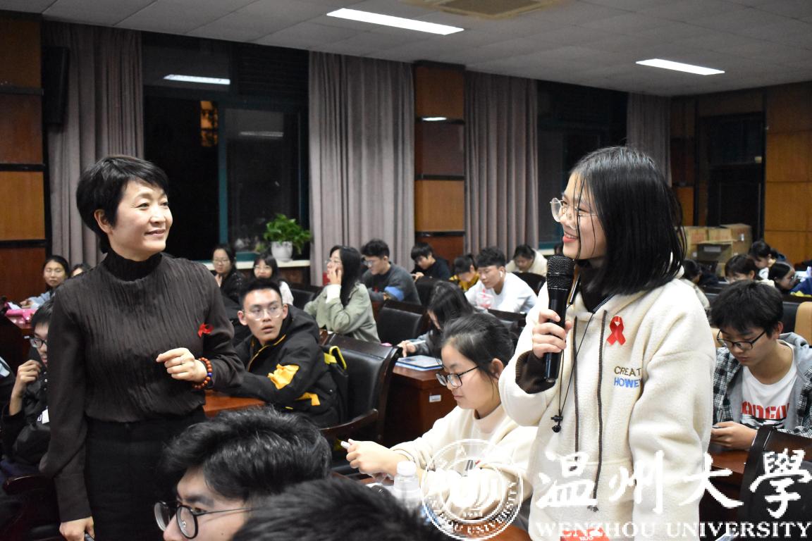 11B-208会议室成功举办,讲座邀请了温州市健康妇幼指导中心保健科科长、副主任医师叶傲霜作为主讲嘉宾。叶傲霜老师以通俗的语言,生动真实的事例,教授了同学们许多有关性与艾滋病的实用知识,提醒同学们一定要在日常生活中注重个人健康的保护,重视血液传播潜在途径的人为阻断,养成文明健康的生活习惯,避免易感染艾滋病危险行为的发生,提升健康素养。