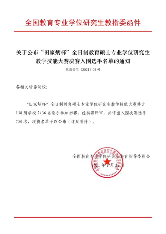 “田家炳杯”全日制教育硕士教学技能大赛是教指委主办的一项高水平赛事。本次大赛为广大师生提供了一个展示专业技能的平台。这不仅提高了同学们的教学技能、课堂应变能力和实践动手能力,还充分展示了我院研究生扎实的专业素养和较高的教学技能水平,在全国性的舞台扩大了我院研究生教育的影响。
