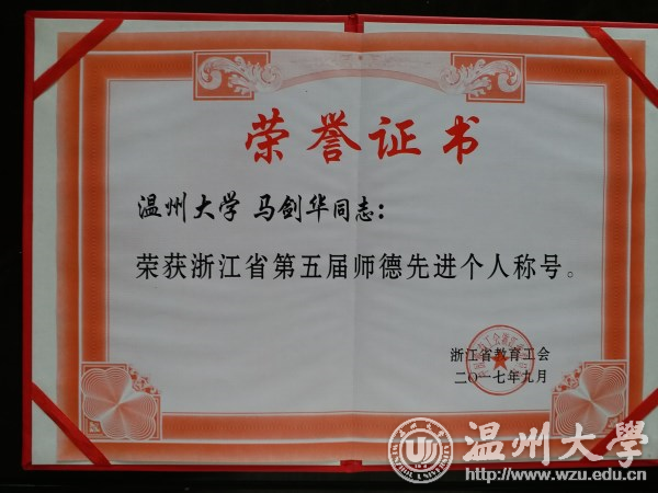 在民主推荐的基础上,省教育工会对候选人的材料进行审核并经评审委员会评审,我院马剑华老师获得“浙江省第五届师德先进个人”荣誉称号。