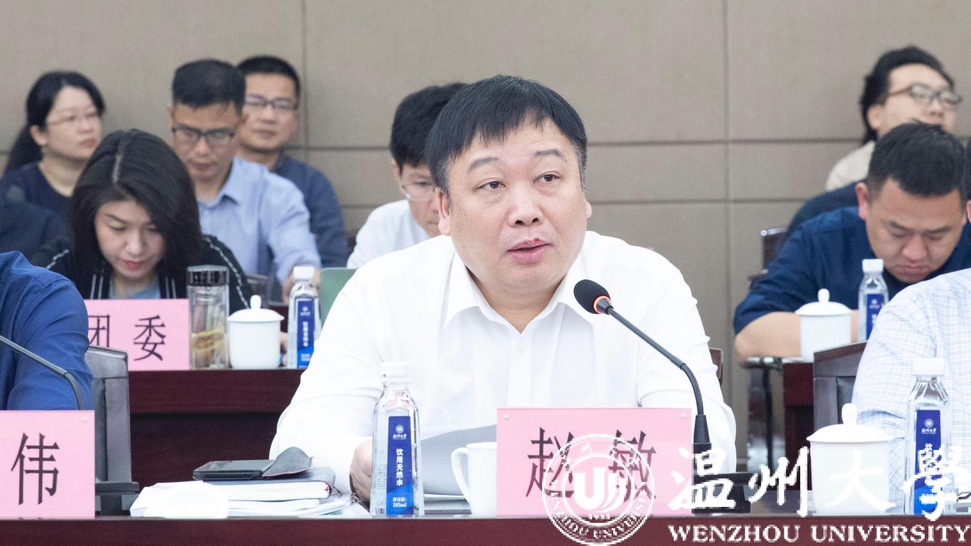 专家意见反馈会于15日下午召开。温州大学党委书记谢树华、校长赵敏,温州商学院党委第一书记周湘浙,温州大学副校长薛伟、纪委书记吴金法、副校长蔡曙光,学院党政领导干部和专业骨干教师出席会议。