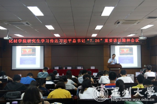 11B208会议室,潘从义副书记为同学们作形势政策讲座。正式开始讲课前,潘副书记向大家介绍了学院的研究生会组织和学院开展的校园科技文化活动,鼓励大家积极参加,充分利用校、院搭建的各类平台提升综合素质,全面发展,为将来奠定坚实的基础。讲座开始后,潘副书记从国内国际政治形势谈起,重点为大家解读了习近平总书记“7.26”重要讲话精神,从 “我们党要举什么旗、走什么路”、“以什么样的精神状态”、 “担负什么样的历史使命、“实现什么样的奋斗目标”四个方面为同学们具体的阐明了7·26讲话的主要内容,并提出作为新一代的有为青年,我们要积极响应习总书记号召,为决胜全面小康社会实现中国梦而努力奋斗。