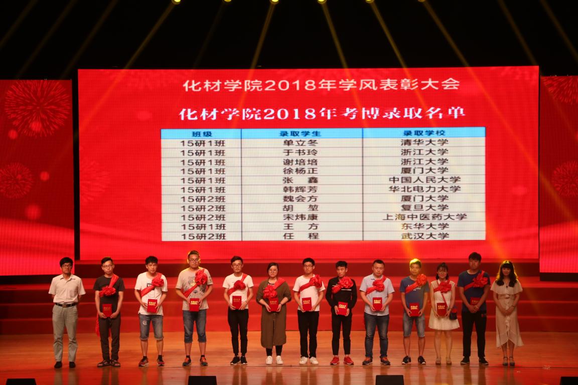 表彰大会会议伊始,王舜院长做了精彩的讲话,他介绍了学院学科与平台建设、专业建设与人才培养工作的发展,勉励在座的即将毕业以及在校的同学珍惜时间,练强本领,努力成为一个对社会有用的人,为化材争光。