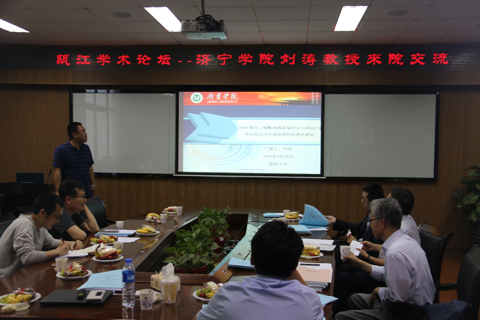 报告会上,来自曲阜师范大学的毕思玮教授(报告:物理化学教材中关于连续反应的一个重要补充)、浙江大学的洪鑫特聘研究员(报告:关于镍催化C(sp3)-O键活化的机理研究)、伊利诺伊大学芝加哥分校的Daesung Lee教授(报告:New Chemistry of Ruthenium Alkylidenes beyond Metathesis)、济宁学院的刘涛教授(报告:NHC催化二烯醛和偶氮烯烃[4+1]和[4+3]环化反应中区域选择性的理论研究)、南开大学的彭谦特聘研究员(报告:计算化学用于不对称催化:从机理理解到配体设计)分别介绍了各自研究领域所取得的最新研究成果和领域发展的方向与前景。