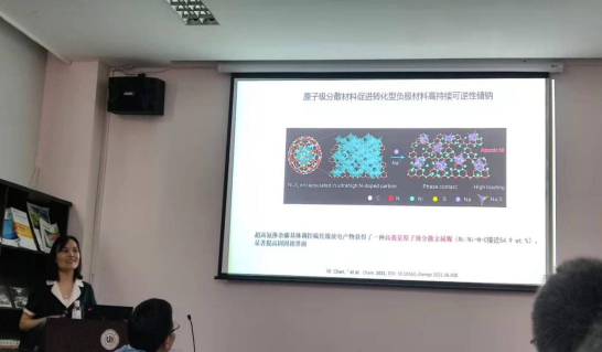 报告由我国目前所使能源、国家能源局关于加快推动新型储能发展文件为指引,加快飞轮存储、钠离子电池等技术及如何实现高性能钠离子电池为向导来展开。陈教授依次讲解了构建多级结构柔性自支撑电极, 配合柔性隔膜组装柔性钠离子电池器件;界面催化助力超高首周库仑效率,实现快速稳定钠存储;富钠界面有效构筑提升首周库伦效率,实现优异循环及倍率性能;PAANa高分子粘结剂参与形成柔韧固态电解质膜,提升微米级FeS电极的储钠性能;电解液成分调控诱导电极界面构筑,解决醚基电解液钠离子全电池稳定循环问题;高载量原子级分散金属镍促进转换型负极保持高持续性反应可逆性和高可逆容量。