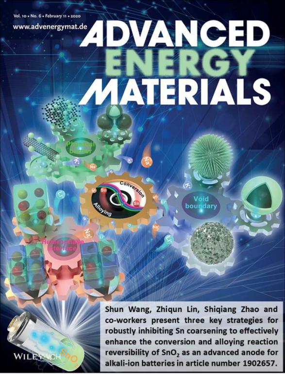 近日,国际能源顶级刊物《Advanced Energy Materials》将有关二氧化锡作为碱金属离子电池负极的综述论文“SnO2 as Advanced Anode of Alkali-Ion Batteries: Inhibiting Sn Coarsening by Crafting Robust Physical Barriers, Void Boundaries, and Heterophase Interfaces for Superior Electrochemical Reaction Reversibility”选为期刊封面文章。该文章第一作者为赵世强博士,加拿大28开奖