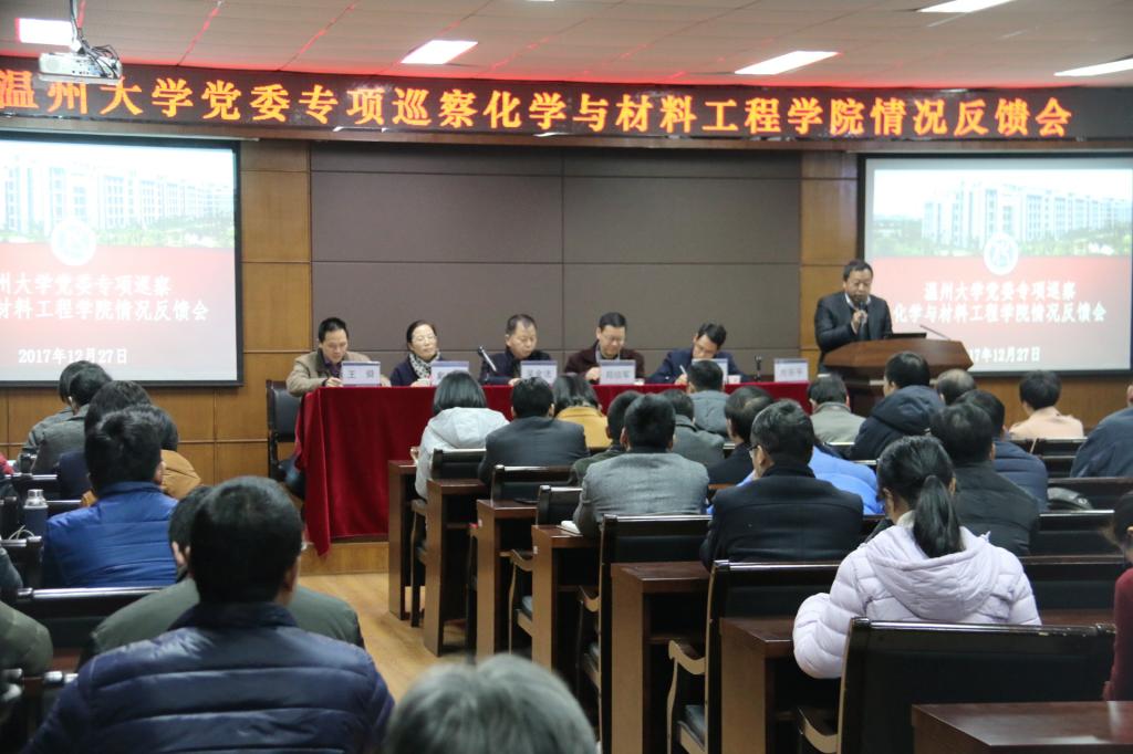 学校党委巡察工作领导小组组长吴金法、副组长郑信军、成员戴梅红、金庆良、陈小敏、巡察组全体成员和学院全体教职工出席反馈会。