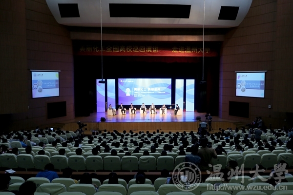 11月18日,由中国化工报社主办,温州大学和华峰集团承办的“美丽化工”高校巡回演讲活动在育英大礼堂举办。中国工程院院士、清华大学教授金涌,中国化工报社副社长王晓云,华峰集团总裁林建一,温州大学校长李校堃,党委委员、宣传部长潘玉驹,温州市有关单位负责人,美国康宁公司、杜邦公司以及温州化工企业代表、学校千余名师生出席活动,校党委副书记林娟娟主持。
