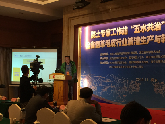 2015年11月9日,院士专家工作站‘五水共治’技术成果推广暨全省制革毛皮行业清洁生产与转型升级技术交流会”在桐乡东方大酒店召开。本次会议由中国工程院环境与轻纺工程学部、浙江省科学技术协会主办,浙江省皮革行业协会、嘉兴市委人才办、嘉兴市科学技术协会、浙江省院士专家工作站服务中心承办。来自全省各地制革毛皮企业共120多人参加会议。温州大学院士专家工作站作为协办单位也参加了此次大会。