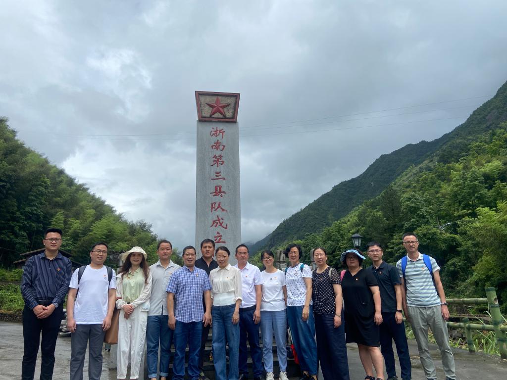 活动第一站:参观红色教育基地。在莒溪镇田寮村党支部书记林克倪的陪同下,我院师生瞻仰了浙南第三县队成立旧址纪念碑,缅怀中国革命先驱的丰功伟绩及革命精神;重走了红军古道,体验革命先辈的不易,感悟抗战历史的艰辛;参观了莒溪中国工农红军挺进师纪念馆,重温革命历史,共同感受老一辈党员干部、红军战士英勇无畏、拼搏奋战的精神。