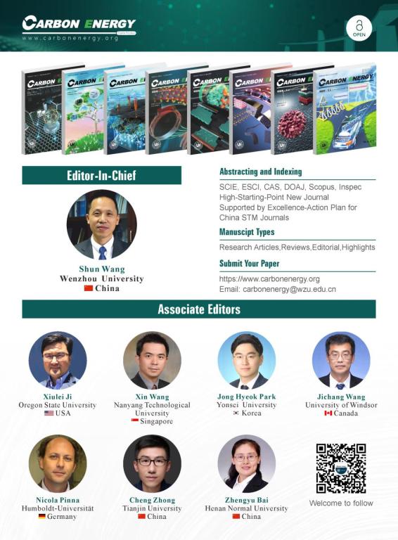 Carbon Energy在多个期刊评估指标中均取得了不俗的成绩,这是期刊建设的阶段性成果反馈,也从一定程度上反映出CarbonEnergy获得了全球同行学者的关注和认可。值此之际,Carbon Energy主编和编辑部衷心感谢期刊编委团队、青年编委团队的帮助和奉献;感谢作者、审稿人、读者和各界人士的信任和支持。“路漫漫其修远兮”,Carbon Energy将继续前行,与广大科研工作者共同“碳”索未知,“能”见未来!