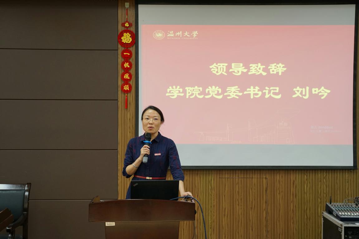刘吟书代表学院全体师生向2022级新生的到来表示最热烈的欢迎。她指出化学学科于去年获批为一级学科博士学位授权点,并于今年迎来温州大学首批7位博士新生,是对学院高层次人才教学和高水平科研教师的认可。她在讲话中对新生提出殷切期望:同学们应当以学立本,准确定位,提高素质能力,不负在学院的大好时光。