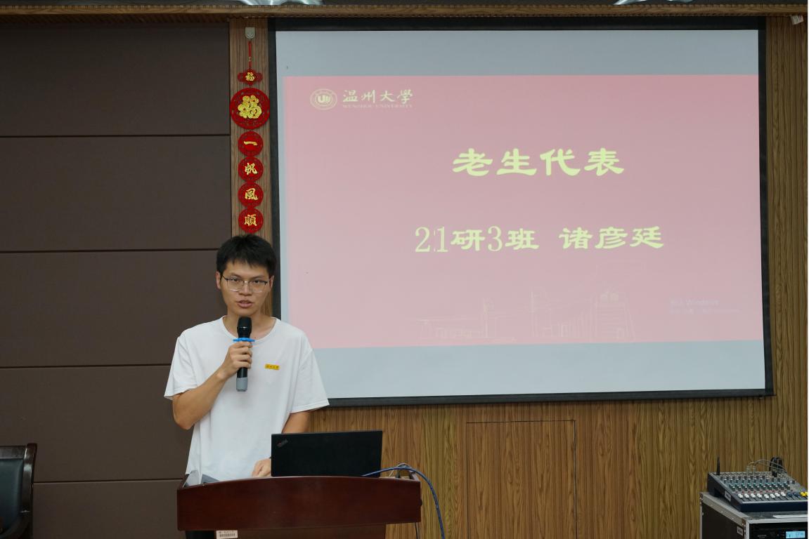 老生代表诸彦廷同学,表示要热情对待科研与生活,才能收获美好的学术成果、专业能力和人生新篇章。