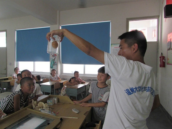 “温心”暑期科普夏令营携手“文化旅人”实践队在温州市瓯海区丽岙三小进行第5天的教学活动。
