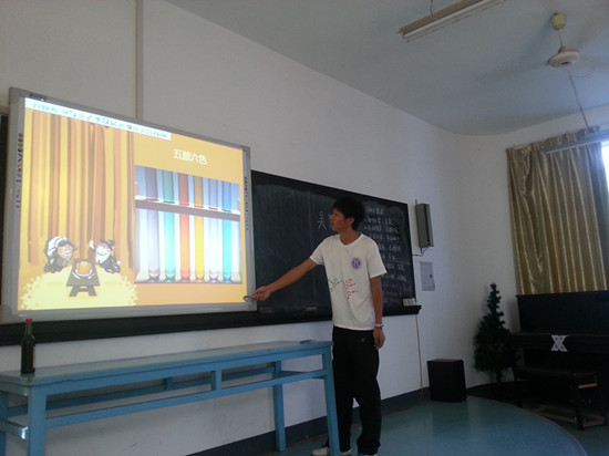 今天的教学内容包括:趣味化学、书法训练、越来越乐、体育训练。这些课程分别由吴燚、杨陶敏、孔雅洁、李林成员展开。同学们徜徉在其妙有趣神奇的科学世界亦翱翔与点点墨香的古典文化中,在聆听和学习了优美的《雪绒花》之后,继而进行了的体育活动。在热火朝天的夏日里小朋友们如同一个个活力四射的小太阳给我们带来不同的光与热。同时我们也迎来了浙江科技学院的同学们,他们给当地的孩子带来了一场精彩纷呈、内容充实的一堂口语课,值得一提的是,我们吸引到塔石乡中心小学前任唐校长给孩子们进行了书法指导。唐校长在简单介绍了握笔方法和笔画写法之后,提出了他的期望,希望书法这门中国传统文化技能可以代代流传,并且能发扬光大。孩子们在中受益颇多。