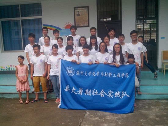 2014年7月4日,温州大学化学与材料工程“薪火”实践队所有成员于浙江省金华市婺城区塘溪镇塔石乡中心小学开展了第四天的教学活动。除了日常的讲学授课,我们还与浙江科技学院的同学进行了联谊。