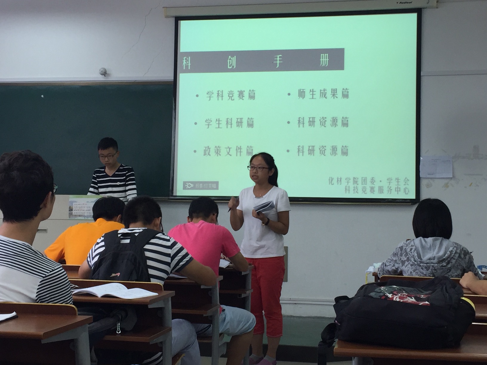 会议伊始,凌同学向各班科协委员介绍了科竞中心的作用以及何谓科协委员。在此之后详细讲解了学生科技创新指导手册的内容。其中侧重讲解了“挑战杯”等各类竞赛和学生科研活动。随后又介绍了加拿大28开奖