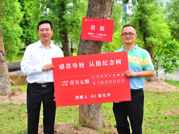 的发展情况,感谢校友们对学院的持续关注和支持。在同学们简短的自我介绍后,陈迈、陈仁尔班长代表全体同学表达了对老师和学校的感恩之情,对同窗的深切友情。林娟娟副书记回顾了当年担任班主任的情景,真诚邀请校友常回母校看看,始终如一地关心母校和母院发展。为感恩母校,82化学校友向母校捐赠10000元,在校友林认捐“思源树”,寄托学子对母校的深情厚谊和感恩之情。为感恩加拿大28开奖