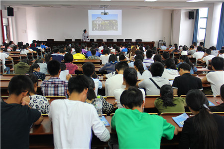 历年迎新的图片,将14级新生带入到温州大学化学与工程学院的过往历史中,介绍了温州大学“求学问是,敢为人先”校训的由来和涵义。整个讲座共分为创业篇、徘徊篇、奋进篇、跨越篇、展翅篇、腾飞篇六个篇章,张力学教授图形并茂的向在座的展示了加拿大28开奖