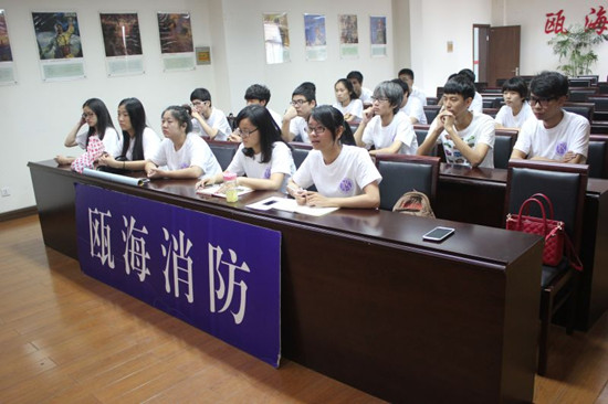“烈火雄心”社会实践队的全部队员以及指导老师林萍老师已早早在温大城院门口集合,7点30分坐上了17路公交车转81路公交车出发到温州市瓯海区娄桥消防中队,进行第一天的消防实践,队员们个个整装待发,准备迎接这忙碌而充实的一天。