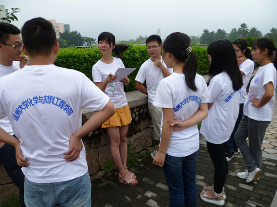 上午8:00分全体队员统一着装准时在A区华表集合,队长及各相关人员清点人数。随后,在温州大学生命与环境科学工程学院旁的空地上可以看到这样一群朝气蓬勃、精神焕发的少年们在那里接受素拓培训,不时传来阵阵欢声笑语……以“破冰之旅”为主题的培训内容丰富多彩,形式多样,从第一环节的组队,互相介绍,制作属于本队的特色队名、对歌、队徽以及最后的整体成果展示,到第二环节“两人三足”以及最后的“你写我猜”,大家都兴致勃勃,意趣盎然。通过此次培训,各成员发掘了自身潜能,增强了自信心,克服了心理懒惰,认识了群体的作用,提升了团队活力,通过真诚的交流融洽地与团队合作。
