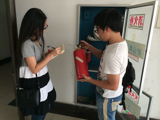 虽然不时很大,但是每一层的消防设施却不少,足以看出学院对消防安全的重视情况。下午5点,检查工作顺利结束。