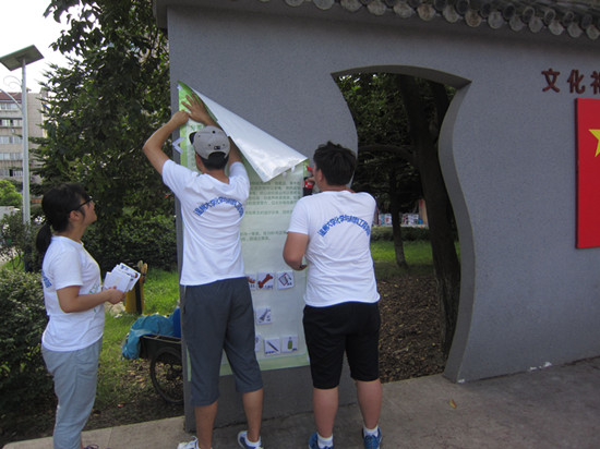 一上午的宣传后,大家都深感疲惫,然而走进社区,走进居民,将环保知识,保护环境热爱地球的意识带到所有人的脑海深处,大家顿时觉得自己的身上肩负着神圣的使命。多天的进社区宣传,使得我们的队员的觉悟大幅提高,每个人都觉得自己是社会环境的一份子,为社会为环境出一份力,做一点贡献都觉得理所应当,这也是身为大学生应有的担当。